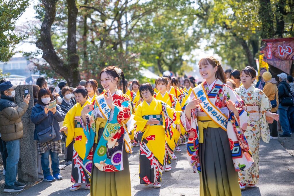 鹿児島神宮駅周辺は歩行者天国になり、立ち並ぶ出店の数もすごいんです! どこを歩いても美味しい香りと活気にあふれていて、霧島のエネルギーを全身で感じることができました。